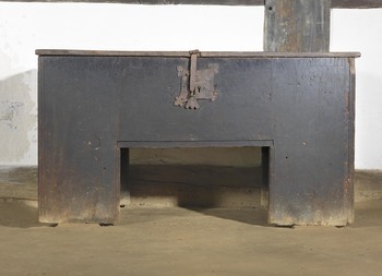 Reservistenbild des Artillerie-Unteroffiziers Simon Krüger zur Erinnerung an seine Militärdienstzeit in der Artillerieschule Jüterbog. Die Fotomontage im Zentrum des Bildes zeigt Krüger von links nach rechts in Form von drei unterschiedlichen Soldatenfiguren: links im allgemeinen Waffenrock der preußischen Infanterie, mittig und rechts in der Paradeuniform der berittenen preußischen Feldartillerie. Die Zugehörigkeit Krügers zu diesem Truppenteil wird durch die mittige Figur als Reiter und durch das Geschütz im Hintergrund der rechten Figur bildlich hervorgehoben. Den Bildhintergrund füllt eine nicht zu verortende Phantasielandschaft mit romantisierenden Motiven. Ein Mittelgebirgszug fällt nach links in Richtung eines Flusses ab, an dem eine Burg mit zwei markanten Türmen steht. Gerahmt wird das zentrale Bild von gehäuften und ineinander verschlungenen nationalpatriotischen Motiven: Waffen, Harnische, Eichenlaub, Architekturelemente und Fahnen des Deutschen Kaiserreichs schließen das Zentralmotiv wahllos gestapelt zu den Seiten ab. Am oberen Bildrand stechen aus dieser Rahmung die Porträts dreier Reichsfürsten (v.l.n.r.: (vermutlich) Luitpold von Bayern, Wilhelm II. als König in Preußen und Deutscher Kaiser und Albert von Sachsen) heraus. Am unteren Bildrand werden diese Porträts durch die Wappen Bayerns, des Kaiserreichs und Preußens und Sachsens gespiegelt. Das erläuternde Inschriftenprogramm findet sich auf drei Ebenen des Bilds. Über den Soldatenfiguren in der Bildmitte deutet der ungelenke Reim, "Es lebe hoch das Regiment, dass sich mit Stolz das Einzige nennt", den Charakter des Druckes als Massenprodukt an. In anderen Exemplaren des Motivs findet sich an der Stelle des Wortes "Einzige" die Regimentsnummer oder der Name der Einheit. Unterhalb der Wappenreihe wird in einer Banderole durch die Inschrift: "Zur Erinnerung an meine Dienstzeit" die Hauptfunktion des Bilds als Erinnerungsstück angesprochen, während der untere Bildrand mit dem Namen des Auftraggebers, seiner Einheit und deren Garnisonsort und der Dienstjahre die personelle, zeitliche und lokale Verortung des Dargestellten ("Simon Krüger. 4.Lehr-Batterie der Feld Artillerie Schiessschule (Jüterbog) 1895/97") liefert.