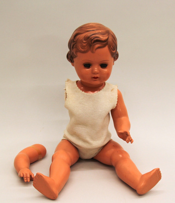 Mit der Puppe spielte Jutta Stöcker in der Zeit, in der sie in Burgholdinghausen lebte. Jutta, 1950 geboren, ist die Tochter von Annette und Herbert Stöcker. Das Haus in Burgholdinghausen, indem die Familie in den 1950er-Jahren lebte, wurde ganzteiltransoziert und im Freilichtmuseum Detmold in den Jahren 2018-2020 wieder errichtet. Die Familie bewohnte das Haus bis 1958. Die Inszenierung, vor allem der Innenräume, thematisiert Alltag und Wohnen der Familie in den 1950er- Jahren.