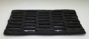 Schlichte Stollentruhe mit gekürzten Stollen und wenigen Rosettenbeschlägen. Wände, Boden und Deckel bestehen jeweils aus einem Brett. Drei Scharnierbänder sind auf der Rückwand bis unter den Truhenboden geführt, das Mittlere dient als Überwurfband. Ursprünglich befand sich rechts auf dem Deckel mittig zwischen den Scharnierbändern ein zweites Überwurfband für das Vorhangschloss. Alle Bänder sind mit dicken Buckelnägeln besetzt. Die Überwurfanlege für das zentral platzierte Schmetterlingsschloss ist verloren.